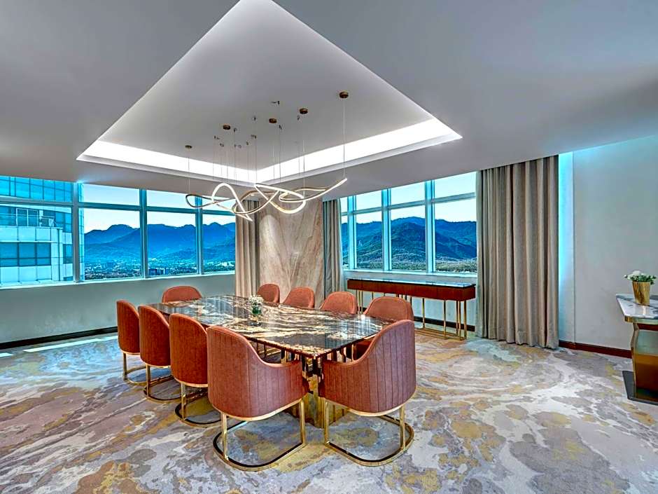 This spacious suite consists of 1 bedroom, a seating area and 1 bathroom with a walk-in shower and a bath. The air-conditioned suite provides a flat-screen TV with cable channels, a mini-bar, a tea and coffee maker, executive lounge access as well as mountain views. The unit offers 1 bed.